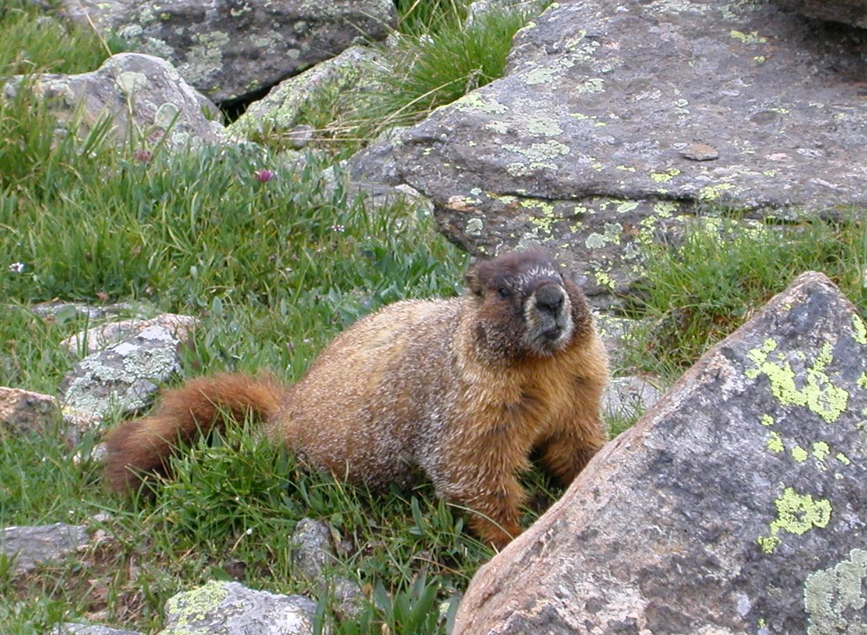 Marmots are simple creatures who don't hold with having lots of nicknames. They are only called marmots. These guys are all yellow-bellied marmots. Hoary marmots also live in the U.S., but further north (I've seen them in Montana and Washington State).
